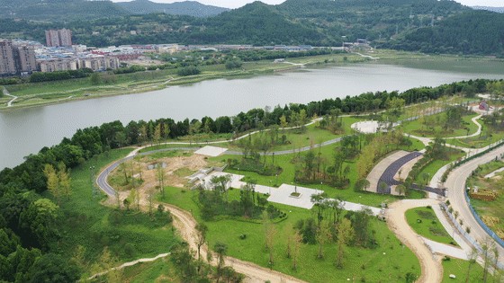 去年10月开工建设的河西湿地公园二标段离堆公园部分,占地面积120亩,总投资4500万元。