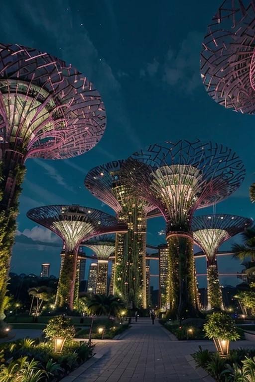 这个令人惊叹的公园包括巨大的人工树木,称为“超级树”,以及美丽的花卉和植物。夜晚时分,树木会亮起灯光秀。