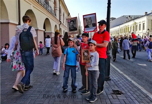 在阅兵仪式后,家里先辈有英烈的后人,会举着先辈的照片,在城市主干道,步行街进行游街,是一种特殊的怀念前辈的方式。在夜晚,还有焰火表演。