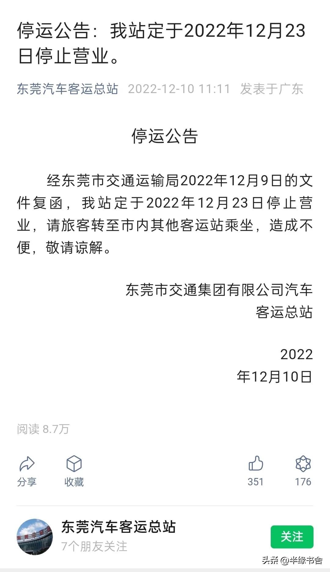 今天,一张停运公告,让在朋友圈传了很久的万江汽车总站,其结业消息终于尘嚣落定。