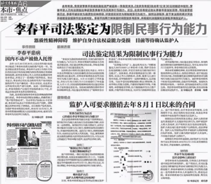 2017年7月17日,北京市朝阳区法院宣告李春平为限制民事行为能力人。