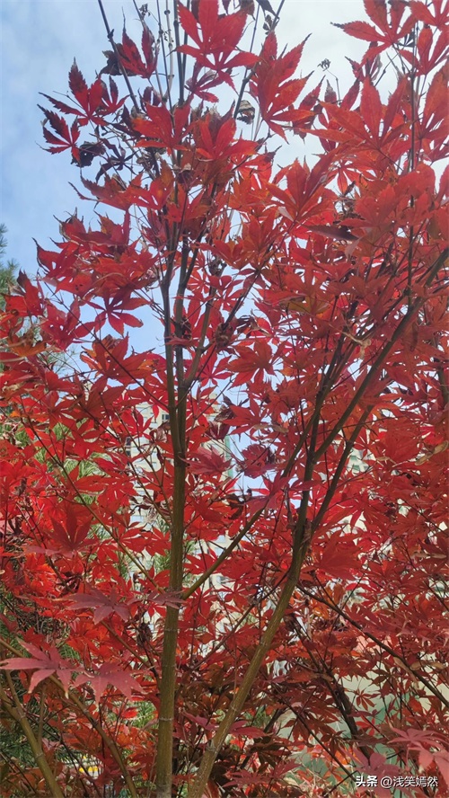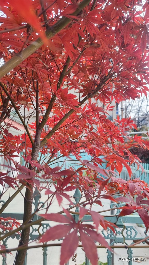 公园北面有一棵红叶,我分不清是鸡爪槭还是红枫。