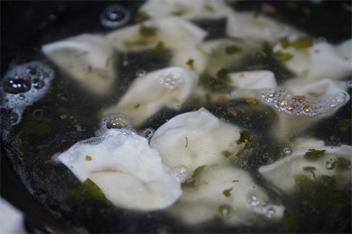 要想馄饨皮子爽滑,煮的时候一定多放水。水开后下馄饨煮两分钟后焯凉水,然后盖盖子继续煮到完全熟。