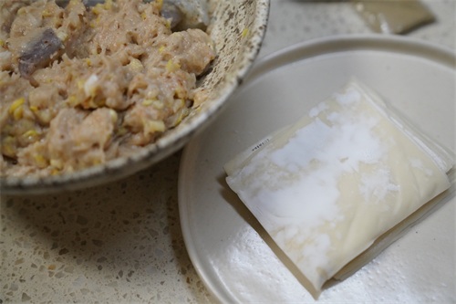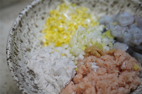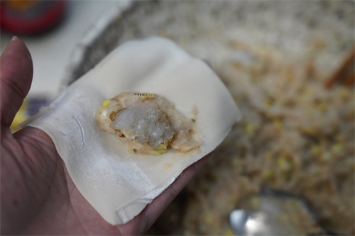 我这次用了鲅鱼泥、韭菜、虾仁丁和葱末,试一下就知道这绝对提鲜的配方,不喜欢吃韭菜还可以用韭黄代替。