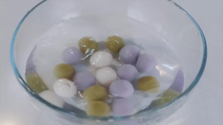 7.煮到丸子浮起,捞出放入冰水中冷却,保持Q弹口感。