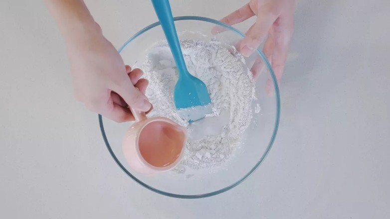 2.少量多次加入水,搅拌成软硬适中的面团。