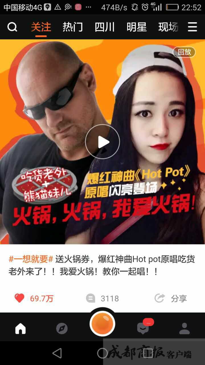 这名火锅老外据了解是一位来自美国的歌手,目前是成都市盛创文化传播有限公司的签约歌手。他在全世界很多国家进行过演出。在过去的十年里一直作为国际摇滚乐队Red Water的主唱。有歌手的经历,这也是《Hot Pot》大火的原因之一吧。Ramon可以用三种语言唱歌,分别是中文,西班牙语和英语。他的表演让人很兴奋,很有活力,互动力也很强,就像他创作的《火锅》一样,很能让观众产生共鸣。要小梓说,Ramon就跟个活招牌一样,不论出现在哪个火锅店,生意应该就像他歌词里唱到了“沸腾的”。因为这个吃货老外不去不好吃的火锅店!