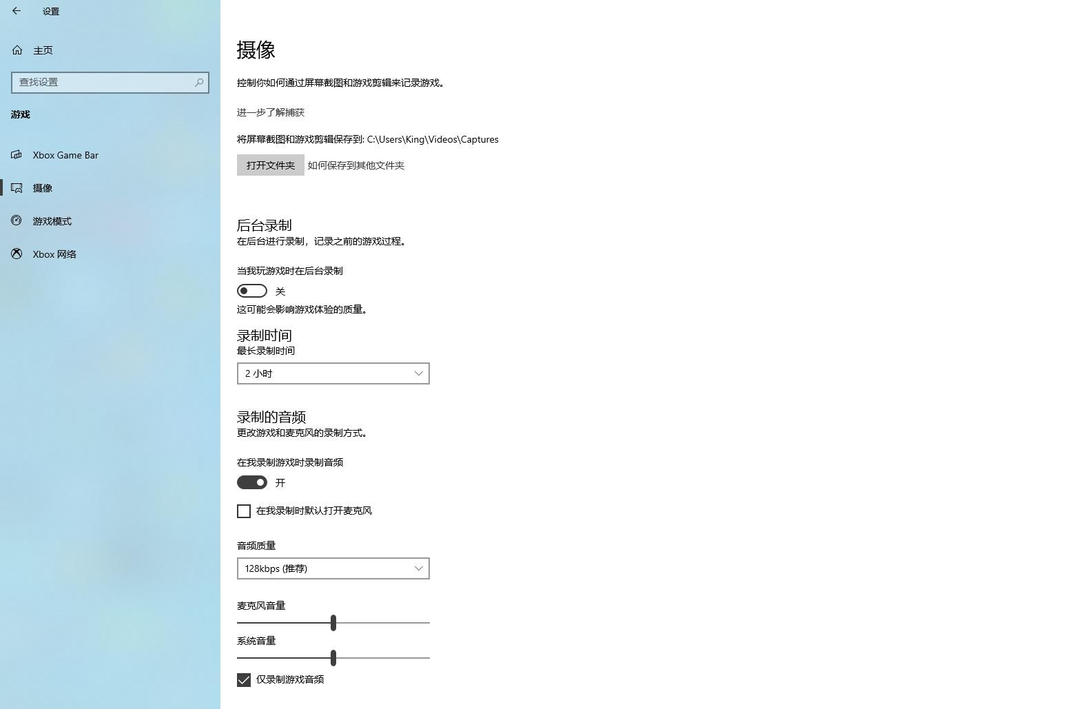 找到摄像 找到后台录制 选择关 (开启后可能会影响后台录屏软件性能)