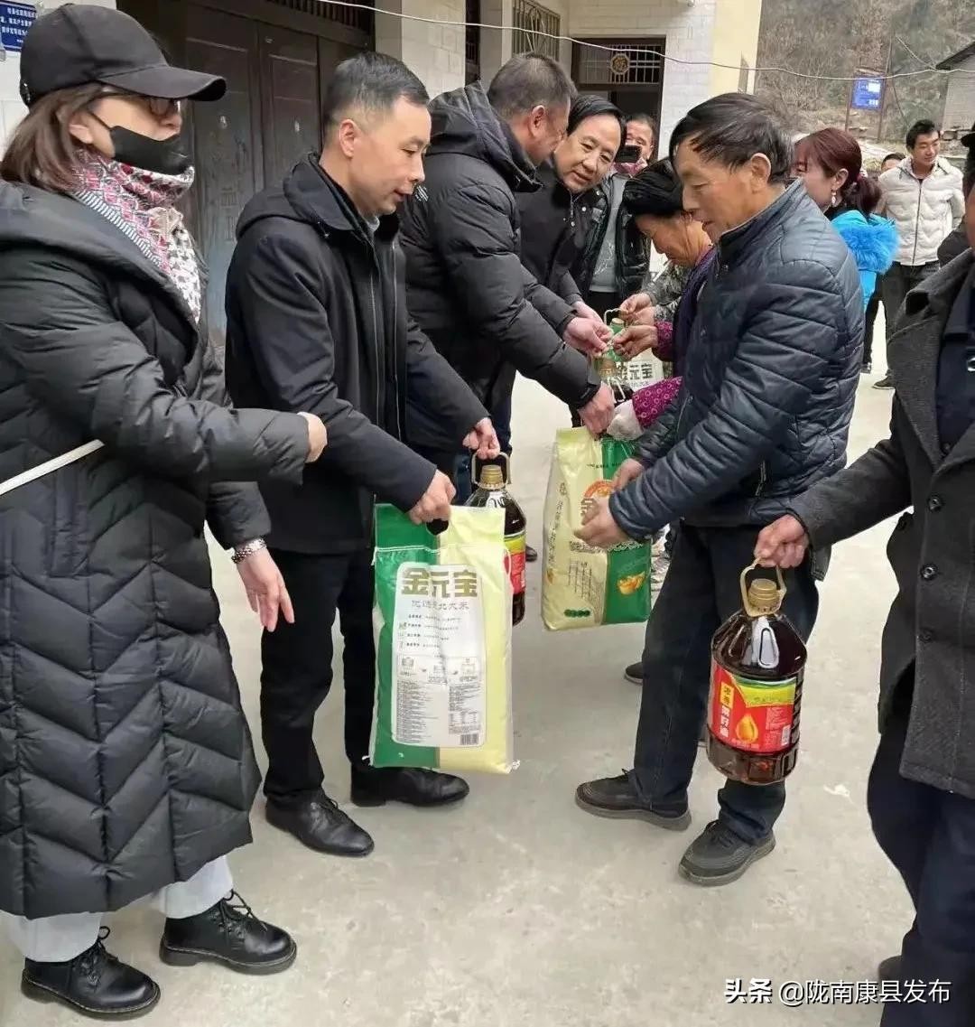 甘肃省高新技术创业服务中心慰问斜坡村困难群众84户301人,了解帮扶对象的思想动态、防寒保暖和生产生活等情况,向他们送上米、面、油、春联等慰问品,并鼓励他们要树立信心和决心,不断奋斗,努力过上更好生活。