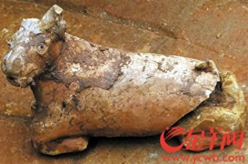 网传图片显示,现场墓穴里散落着数十件古物,包括罐状器皿和盖子,还有一些牛、鸡等动物形状的物品。