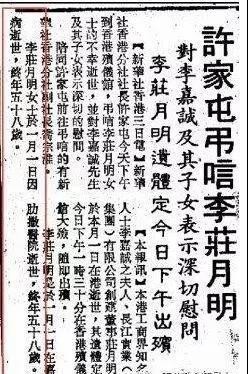 1989年12月31日夜里,李嘉诚和妻子庄月明出席了君悦酒店举办的新年酒会。在新年的第一天,也就是1990年1月1日下午,庄月明在香港旭和道独居的家中逝世,终年58岁。