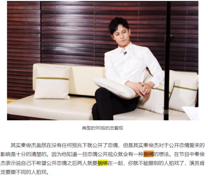 从侧面来看,秦俊杰的心态,对待感情会显得更为随性,更为无所谓。