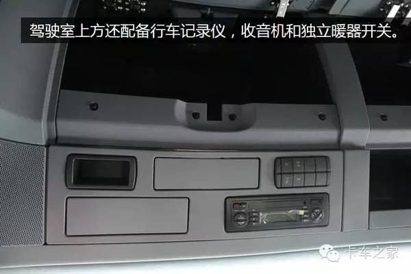 驾驶室上方还配备行车记录仪,收音机和独立暖器开关。
