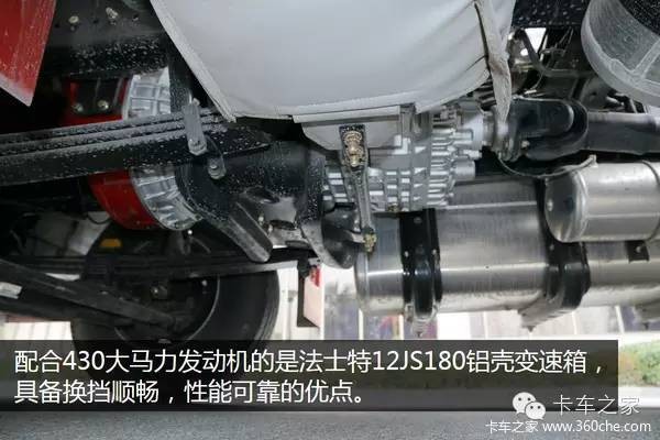 配合430大马力发动机的是法士特12JS180铝壳变速箱,具备换挡顺畅,性能可靠的优点。