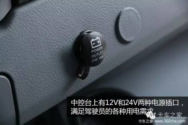 中控台上有12V和24V两种电源插口,满足驾驶员的用电需求。
