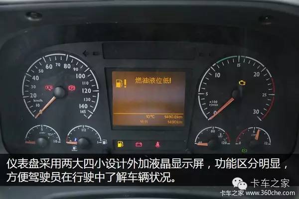 仪表盘采用两大四小设计外加液晶显示屏,功能区分明显,方便驾驶员在行驶中了解车辆状况。