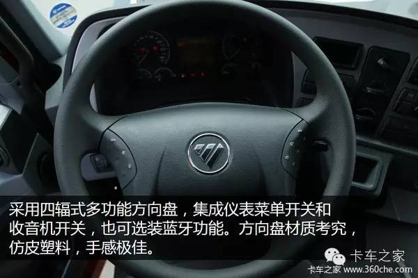 采用四辐式多功能方向盘,集成仪表菜单开关和收音机开关,也可选装蓝牙功能。方向盘材质考究,仿皮塑料,手感极佳。