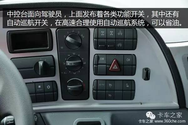 中控台面向驾驶员,上面发布着各类功能开关,其中还有自动巡航开关,在高速合理使用自动巡航系统,可以省油。