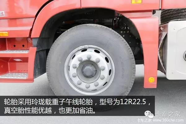 轮胎采用玲珑载重子午线轮胎,型号为12R22.5,真空胎性能优越,也更加省油。