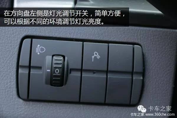 在方向盘左侧是灯光调节开关,简单方便,可以根据不同的环境调节灯光亮度。