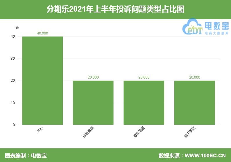 此外,“电诉宝”显示,“分期乐”涉嫌存在信息泄露、退款问题、霸王条款等问题。