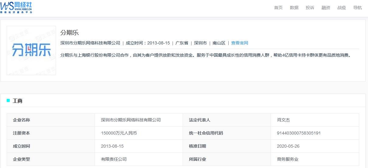 从网经社企业库(COP.100EC.CN)了解,分期乐与上海银行股份有限公司合作,由其为客户提供放款和发放资金。服务于中国最具成长性的信用消费人群,帮助4亿信用卡持卡群体更有品质地消费。