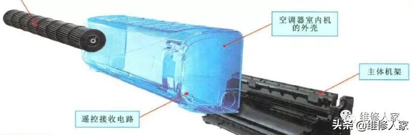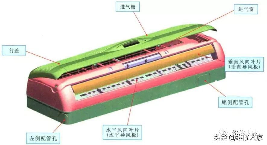 目前,市场上主流的空调器都是分体式空调器,简单地说,就是由室内机和室外机两部分组成的。安装在室内的就是室内机,安装在室外的就是室外机。下面首先来了解一下挂式空调器室内机的构造。
