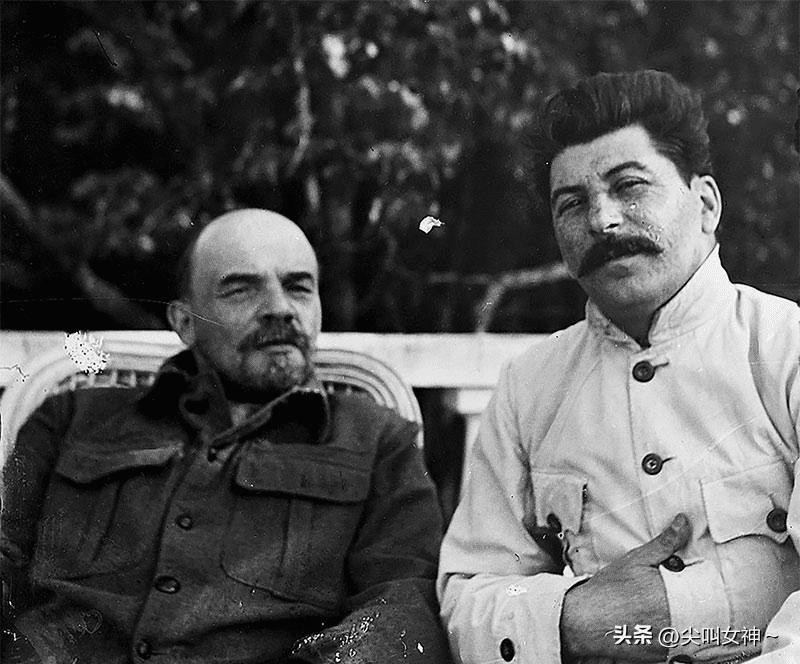 列宁和斯大林在莫斯科郊外的高尔基合影。1922 年 9 月