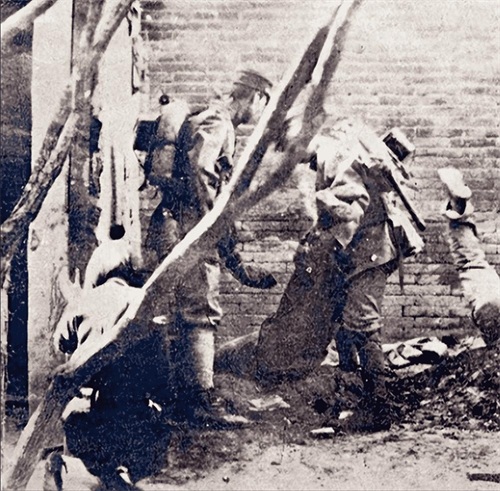 日军对手无寸铁的老百姓进行虐杀,他们正在活埋那些无辜的人。