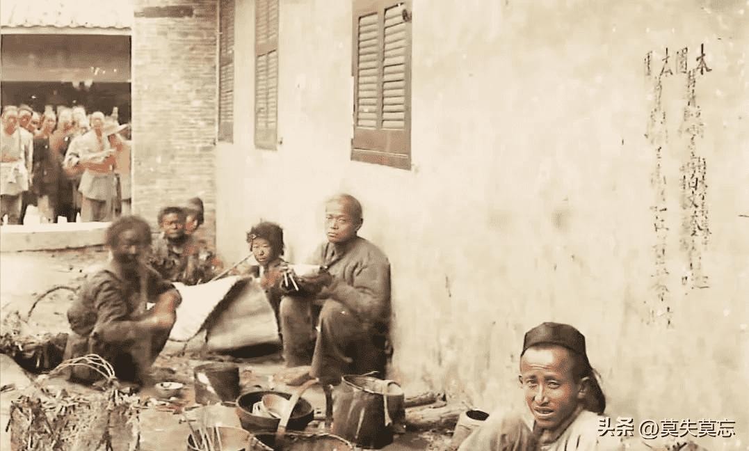 镇江逃荒的穷苦百姓,天灾人祸下,都是居无定所,举家乞讨。