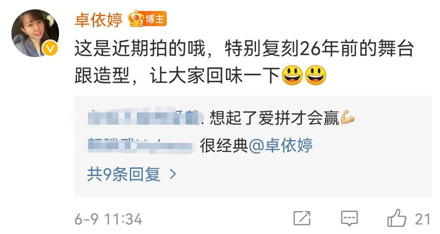 评论区有人傻眼,以为是1995年拍摄的,问卓依婷为什么当时不发要等到现在发,徒留遗憾。