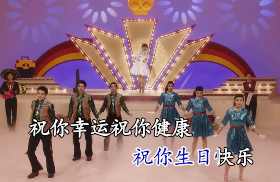 舞台的装修也是过去的风格,亮闪闪的霓虹灯光、七彩的配色,还有用干冰做出的效果,白色雾气升起,增添朦胧感。乍一眼看,真分不清是过去的视频还是最新拍的视频。
