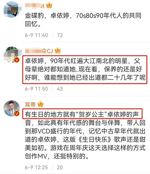 6月9号,知名歌手卓依婷的近况曝光,某游戏专门请她唱《生日快乐》,庆祝国服发行一周年,原唱歌声加复古舞台,勾起无数人童年的回忆。