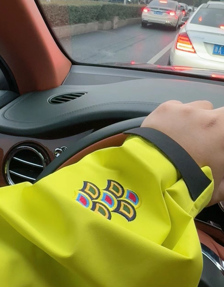 配色方面,以荧光黄搭配藏青色的大面积撞色,拉链和logo用红色点缀,看起来非常喜庆,确实很有“中国新年”的感觉。