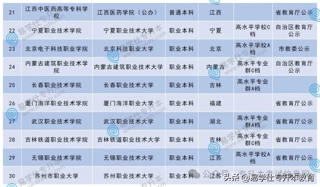 从近2年各省份公示的拟升本院校名单来看,“双高计划”中的院校更有希望升本,比如下方这个名单中的院校,很多都已经成功升本,或者在升本路上了。