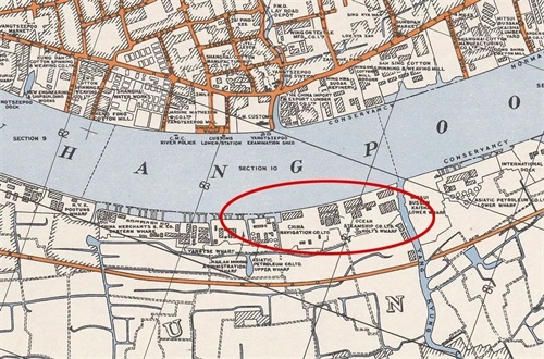 1935年英文版上海地图中标注的太古“蓝烟囱”码头