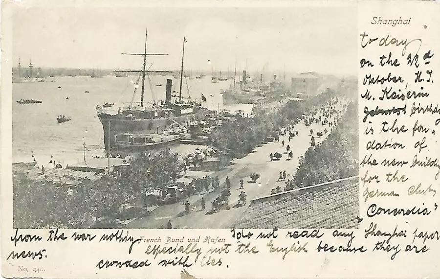 停靠在法租界外滩太古码头的“ Ngankin(安庆) ”轮,背景右侧这栋就是太古洋行办公大楼。照片拍摄于1911年