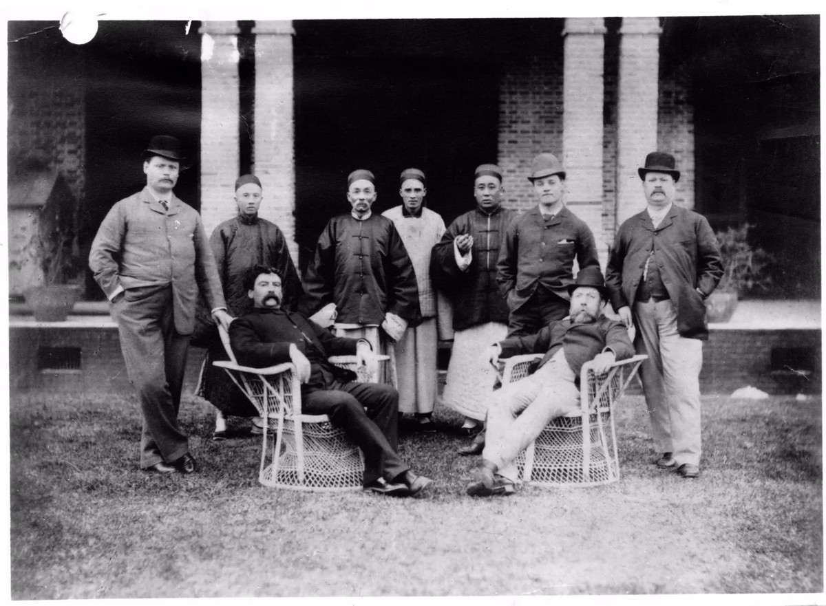 1883年上海太古洋行职员合影。最右站立者就是晏尔吉 1883年上海太古洋行职员合影。最右站立者就是晏尔吉