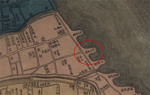 1884年上海城厢租界全图中标注的法租界外滩太古码头,其位置靠近当时的Rue Colbert(科尔贝克路),也就是现今中山东二路新永安路位置。