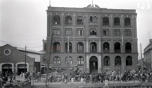 20世纪20年代繁忙的法租界外滩太古码头。太古洋行办公大楼和大型仓库已经颇具规模