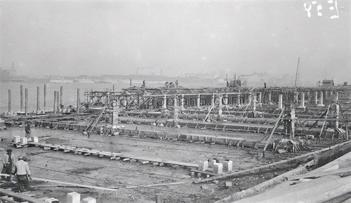 在建的蓝烟囱码头,1920-24年太古公司续建了第三、第四号泊位。