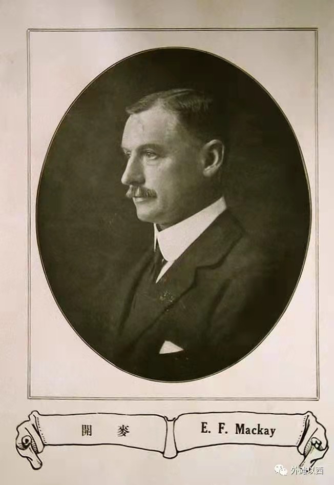 台阶坐E.F.Mackay,中文名叫麥開,他太太坐同一层台阶,1924年介绍也顺便强调了一下他太太家庭背景。