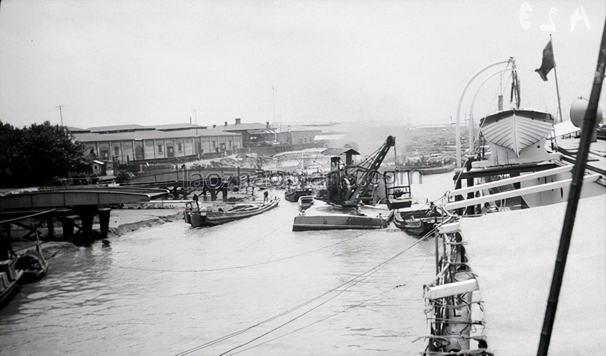 1919-20年浦东,华通码头,仓库靠近江岸处出现塌陷。