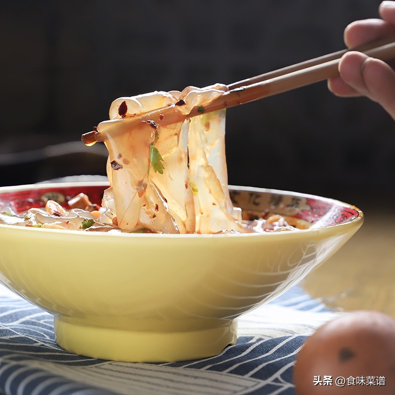 做好的浑源凉粉色泽清亮,晶莹剔透,犹如翡翠般诱人,用筷子轻轻夹起一片凉粉,放入口中,顿时感受到滑嫩的口感。