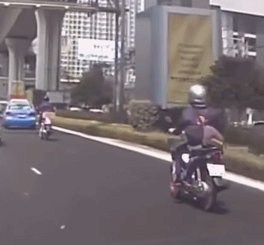 后车:幸好我跟她保持了安全距离,不然可能这一下就砸在我头上了