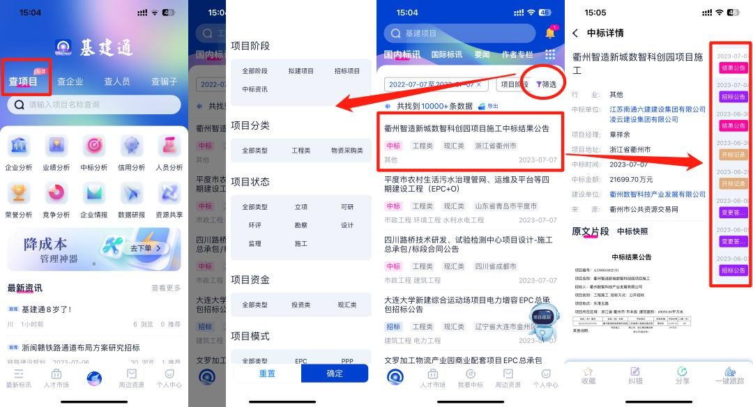 设置筛选条件,包括项目阶段、分类、状态、资金、