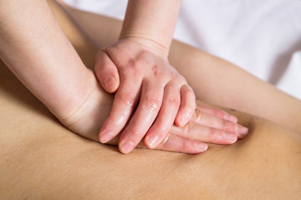 背部按摩 可用指端沾精油,使用滑动轻抚及揉捏的手法,力道可强可弱,但千万不要在脊椎上按摩,从背面的腰部内侧开始,两手的动作要连贯顺畅,向上按摩到肩膀,再往下按摩背部的外侧,使精油扩散到整个腰部,多次重复这个按摩动作,时间越久,身体越加感到轻松。