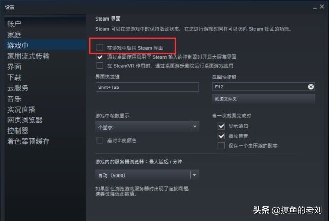 玩家打开steam页面,点击“设置”,找到“游戏中”按钮,点击打开,勾选“在游戏中启用steam界面”,最后点击确认即可。