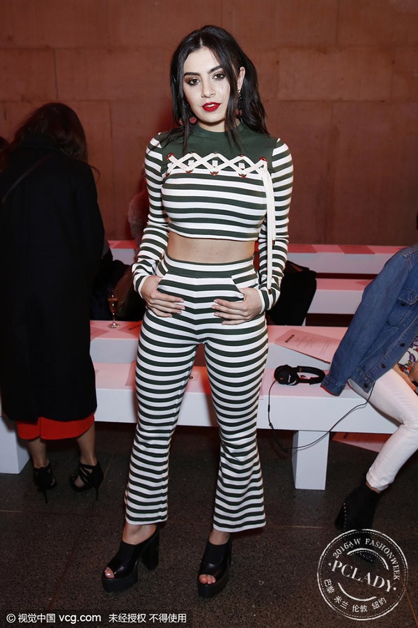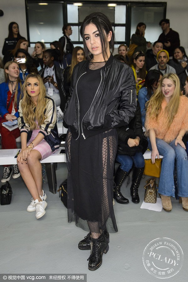 1992年出生的人气新星Charli XCX(被中国粉丝称为“洗茶妹”)接连看了House of Holland、Sibling两场秀不停歇。House of Holland秀中,CharliXCX黑纱裙搭配皮夹克大腿侧漏相当性感撩人,Sibling秀场则选择一身条纹装耍帅。