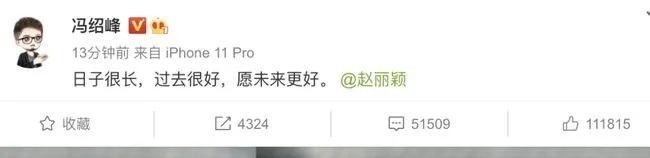 而冯绍峰则发文称,日子很长,过去很好,愿未来更好。并艾特了赵丽颖。